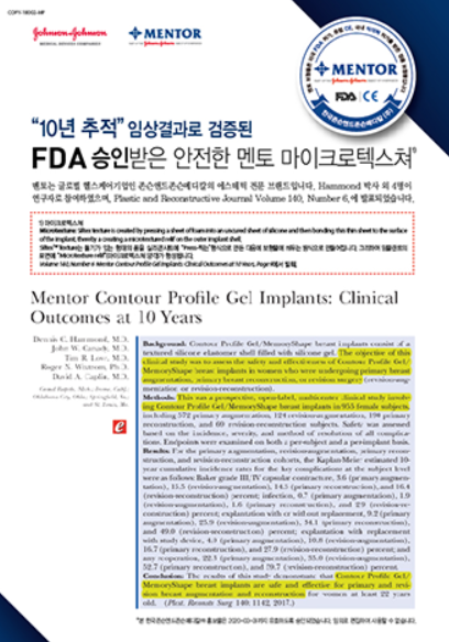 50년이라는 오랜 역사와 함께 여러 임상 결과를 기반으로 안전한 보형물을 선보이는 멘토(Mentor)입니다.